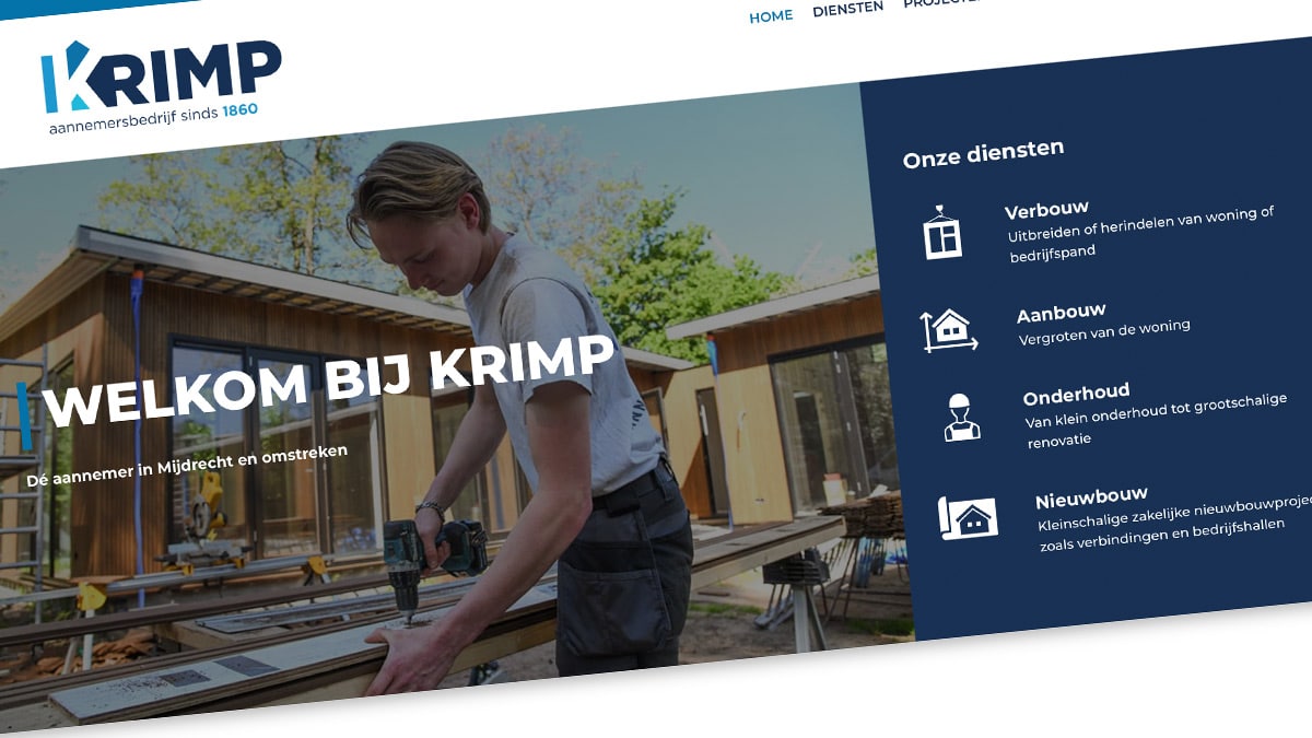 Aannemersbedrijf Krimp is jouw betrouwbare partner voor nieuwbouw, verbouw of onderhoud. Ervaren vaklieden zetten je bouwplannen om in een prachtig resultaat. Krimp denkt mee, draagt oplossingen aan en ontzorgt. Je kunt rekenen op vakmanschap, persoonlijke aandacht en service en kwaliteit.